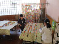 一枚一枚の色紙をていねいにつなぎ合わせ、たくさんの輪飾りができました。