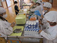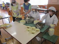 入学した頃には、先生の手で配膳していた給食でしたが、今では、児童が作業を分担してできるようになりつつあります。続けることで、いろいろな作業ができる力を付けてきています。