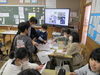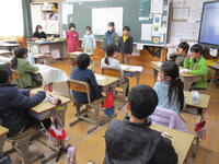 なかよしタイムでは、1~5年生の児童が手話を交えた歌の練習に励みました。曲は「ビリーブ」です。5年生が中心となって手話付きの動画を事前に撮影し、その動画を視聴しながらなかよし班ごとに集まって練習しました。歌は6年生を送る会で披露されます。