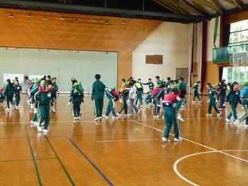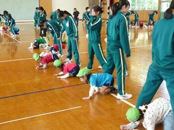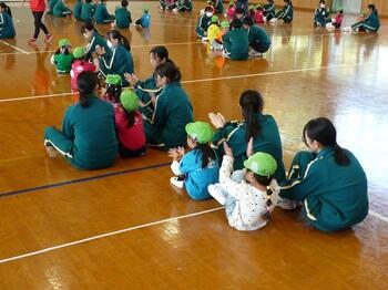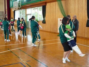 本日より、3年家庭科の保育実習がスタートしました。今年は町内の幼稚園児が本校に来校し、3年生と交流を行います。小さな子の扱いに慣れない中学生も、園児の積極的なコミュニケーションアプローチのおかげで、お互い、笑顔いっぱいで遊ぶことができました。