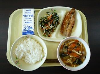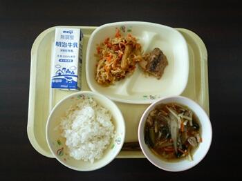 麦ごはん いわしカリカリフライ ごぼうサラダ どさんこ汁