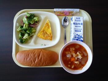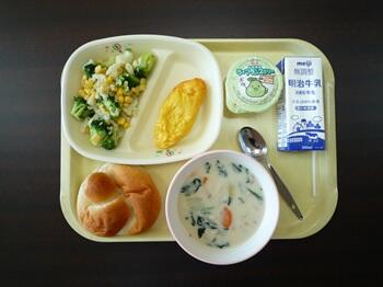 牛乳パン(アップルハニー) アンサンブルエッグ イタリアンサラダ ミネストローネ