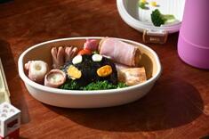 ごはん デミグラスソースハンバーグ(カボチャ型) 大根サラダ かぼちゃの味噌汁