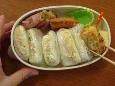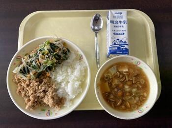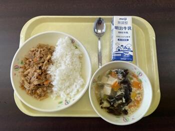 麦ごはん 春巻き 生揚げの味噌炒め わかめスープ