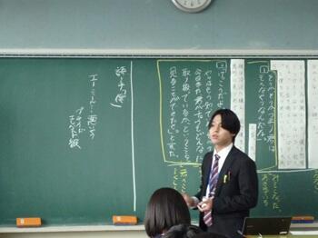 本日、2人の教育実習生は16日間の教育実習の集大成である「研究授業」を行いました。緊張の面持ちの中、自ら作成した学習指導案に沿って授業を展開しました。また、それに臨む生徒の姿勢も素晴らしく、いつにも増して真剣な眼差しで授業に集中していました。