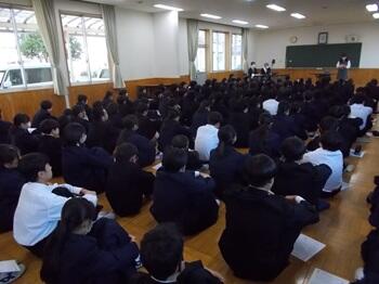 本日5校時目に、2年生は来週実施される「マイ・チャレンジ(職場体験)」の事前指導を行いました。私からは、自分の進路選択の糧とするために、真剣な態度で臨むようにと、生徒の皆さんに伝えました。お世話になる事業所の方々は、是非、中学生をお客さん扱いせず、しっかりご指導いただけると嬉しいです。よろしくお願いいたします。