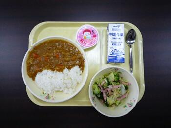 チキンカレー 海藻とツナのサラダ ヨーグルト