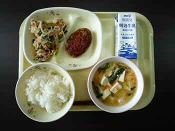 ごはん ハンバーグケチャップソース 切干大根とツナの和え物 にら卵汁
