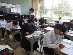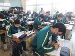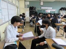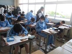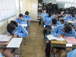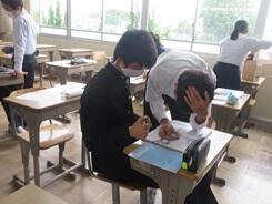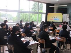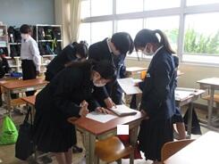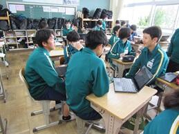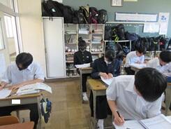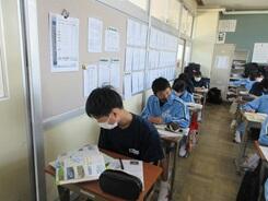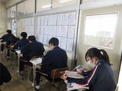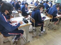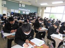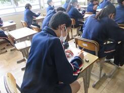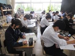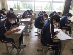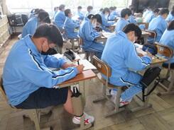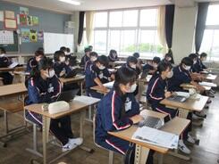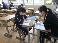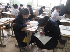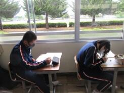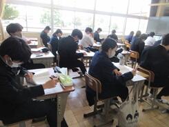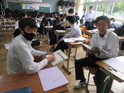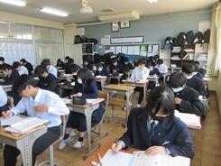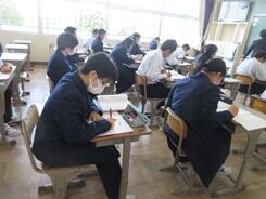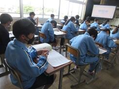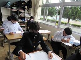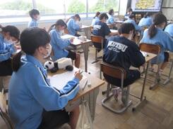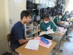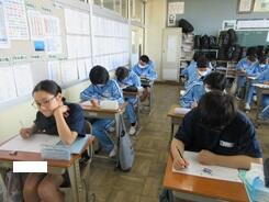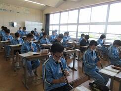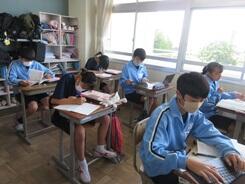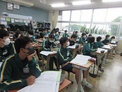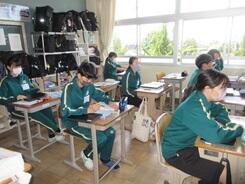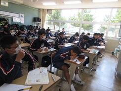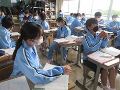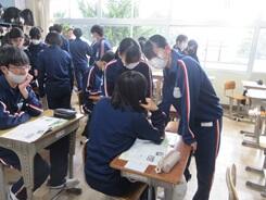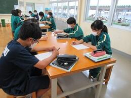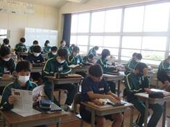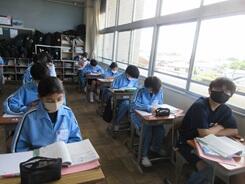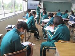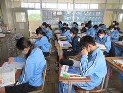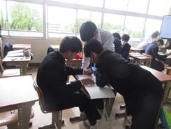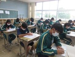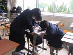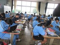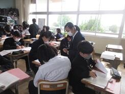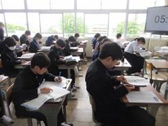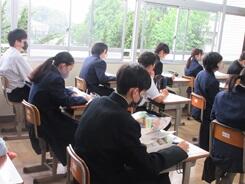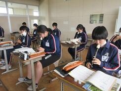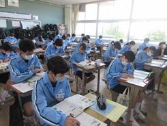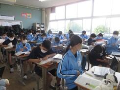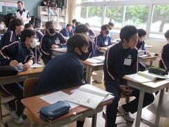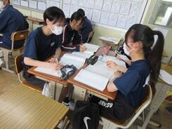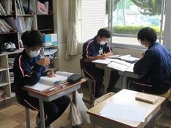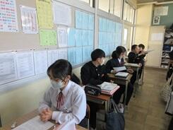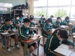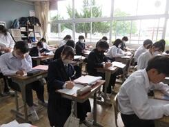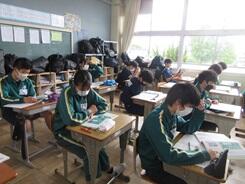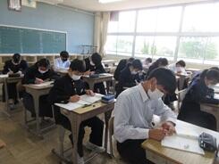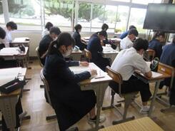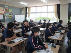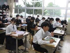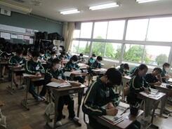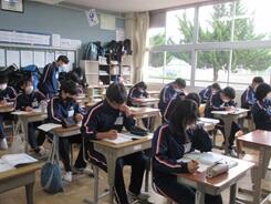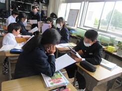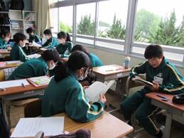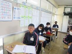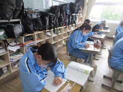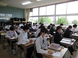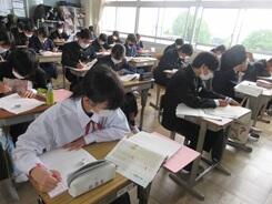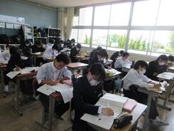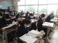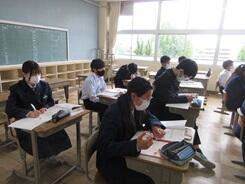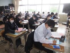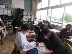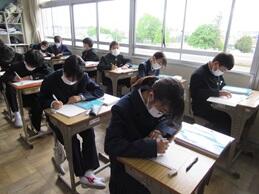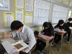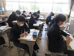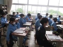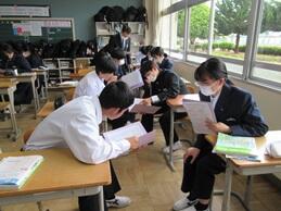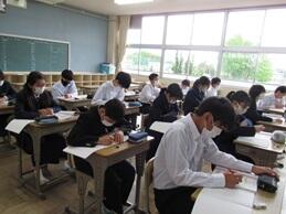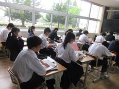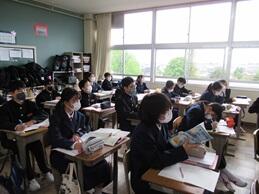 今日の朝、校舎内を見て歩いていると、3年生の談話コーナーで、高校案内を見ている2人の女子がいました。少し話をすると、志望校も決まっているようでした。まだ5月ですが、できるだけ早い段階で自分が行きたい学校を決めることはとても大切だと思います。2人の姿を見て、ちょっとうれしくなりました。行ける学校ではなく、行きたい学校に行けるように、がんばれ3年生。