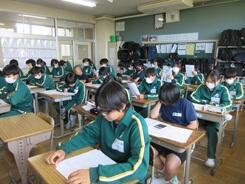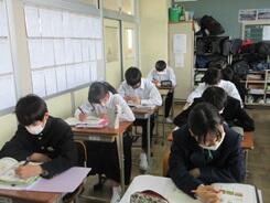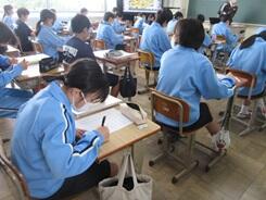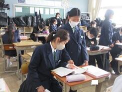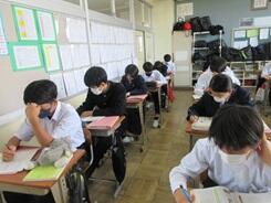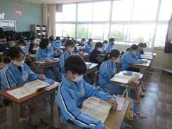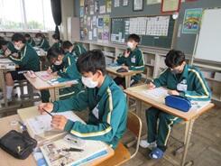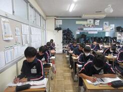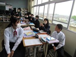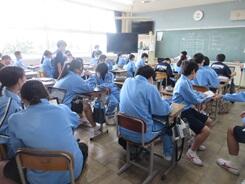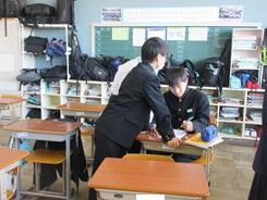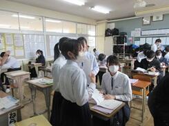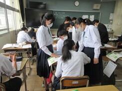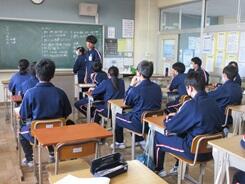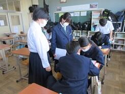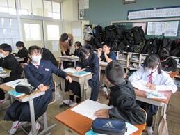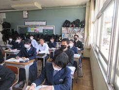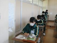 今日の1時間目、授業を見て歩いて3年3組に入りました。そして教室の一番後ろを通って窓際に移動しようとした時、1人の男子生徒が椅子をちょっと前に引いて、歩く通路の幅を少しだけ広げてくれました。そんなちょっとした優しさが、とてもうれしく感じました。みんなが、こんなちょっとした優しさをもって生活したら、よい学校になるだろうと思いました。