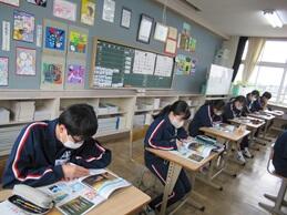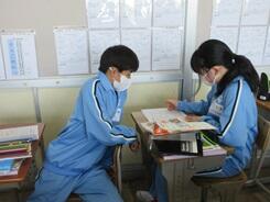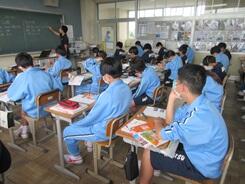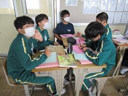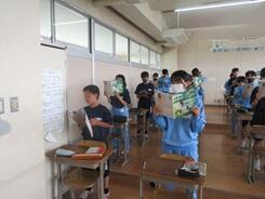 Unit1 Part3で、登場人物になりきり、音読する授業が進められていました。