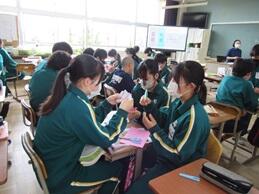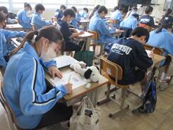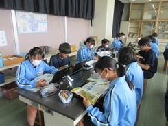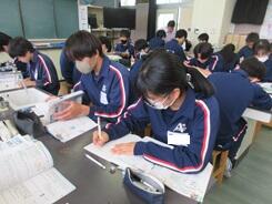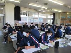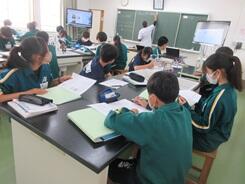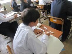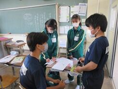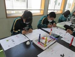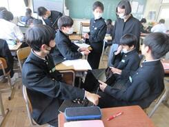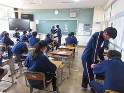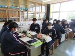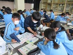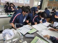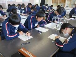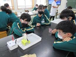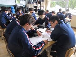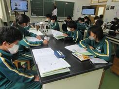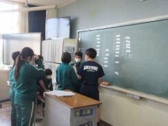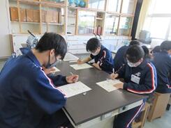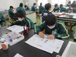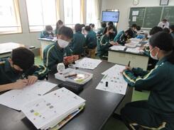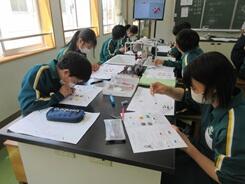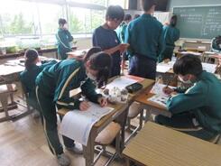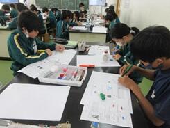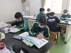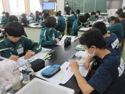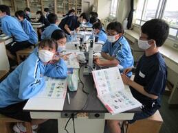 体細胞分裂の進み方についてまとめ、その後グループで発表していました。