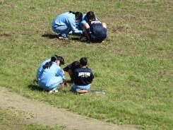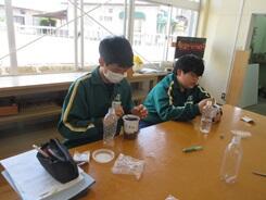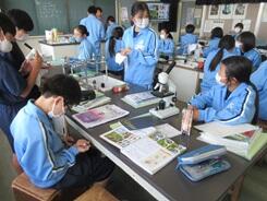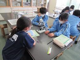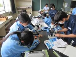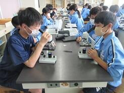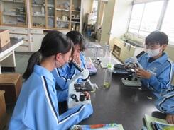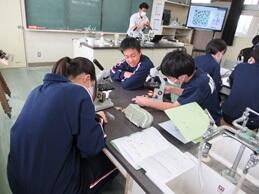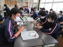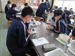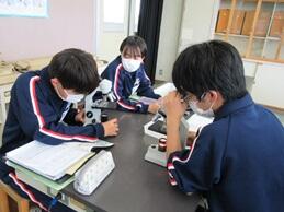 ニンニクの根を使って、細胞の増え方を観察していました。