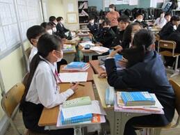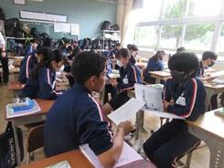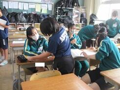 動作や行為が終わっているかを、たずねたり答えたりする授業が進められていました。