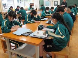 短歌の鑑賞文を読み合って、友達のよさを含めたふりかえりを書いていました。
