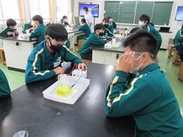 酸化銀を加熱すると、もとの物質とは性質の異なる物質ができることを確かめる実験に取り組んでいました。
