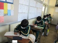 ワークを使って、これまでの学習のふりかえりを行っていました。