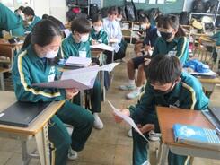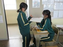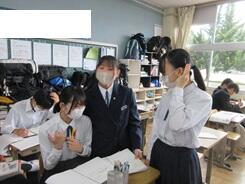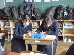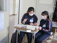 今日の朝、校舎内を見て歩いているときに、もう一つよい光景が目に入りました。それは、理科室の前で掲示物を貼っている教員を、1年生の女子生徒3名が手伝っている姿でした。生徒たちは、きっと先生の仕事を手伝うことで、自己有用感を感じていると思いました。とてもよい雰囲気で作業が進めらていました。