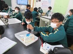 酸化銀を加熱すると、何ができるかを確かめる実験に取り組んでいました。