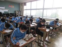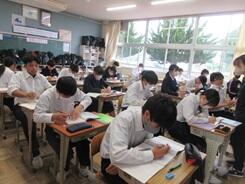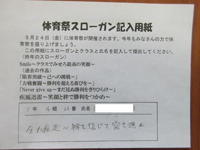 今日、授業を見て歩いていると、3年生教室には体育祭後、教室で撮ったクラス写真が掲示してありました。みんなとてもよい表情なので、引きつけられるものがありました。きっと、充実感や達成感があったのだと思います。よい体育祭になりました。