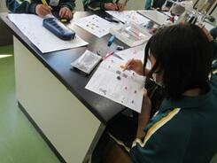遺伝の規則性と遺伝子、生物の種類の多様性と進化の積み上げプリントに取り組んでいました。