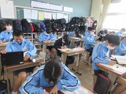 can can’tを使って、自分のできること、できなことを英語の文で書く授業が進められていました。