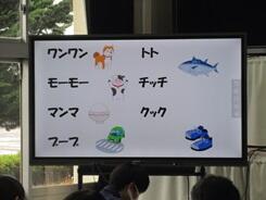 本時のめあて「~の時に~していた。」という表現を使って交流する活動の前に、教科担任のいろいろな質問に答える活動が進められていました。
