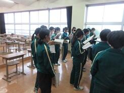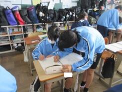 昨日、職員室掃除を見ていると、校長、教頭席のところを細かく丁寧に掃き掃除している一人の3年生男子が目に留まりました。「丁寧なそうじだね。」と声をかけると、「ありがとうございます。」という返事でした。素晴らしい働きぶりが見られちょっとうれしくなりました。