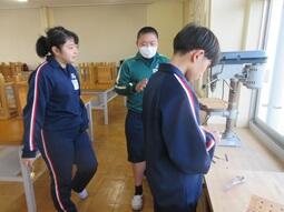 金属を加工して、キーホルダーをつくっていました。完成した生徒もいました。