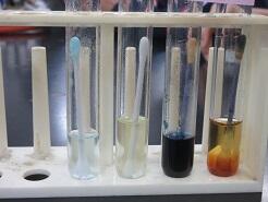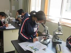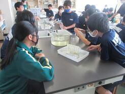 ホウセンカとトウモロコシを使い、根から吸い上げられた水や栄養分は、どのように運ばれるかを観察していました。