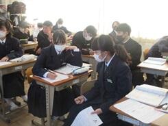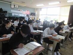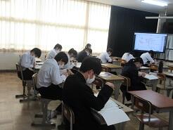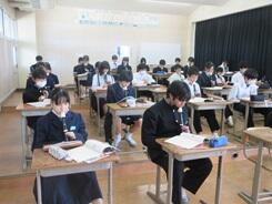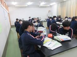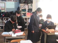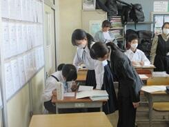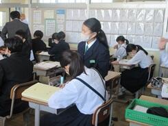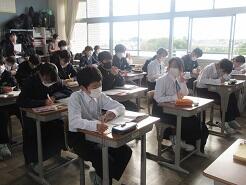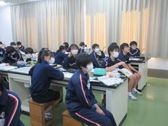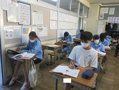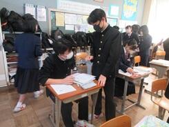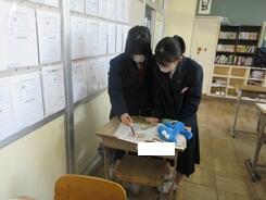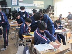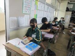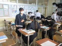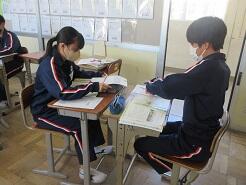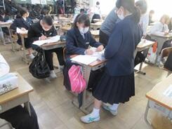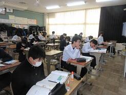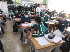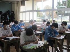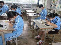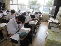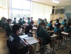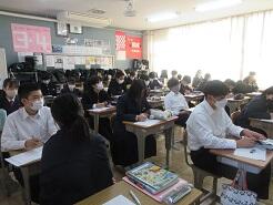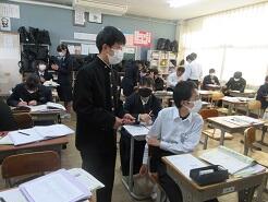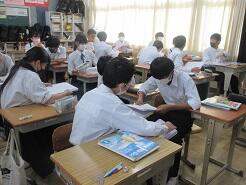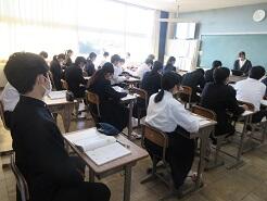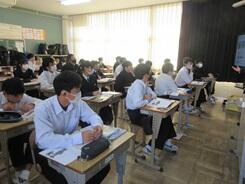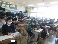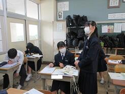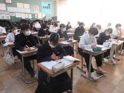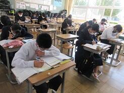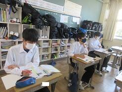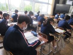 今日の2時間目、授業の様子を見に3年5組に入り教室の後ろ側を通って窓側に移動しようとしました。その時、一番後ろに座っている2名の生徒が、さっと椅子を引いてスペースを空けてくれました。同じタイミングでのこの心遣いに、何だかとってもうれしくなりました。素晴らしい生徒たちです。気配り、心配りは大切ですね。
