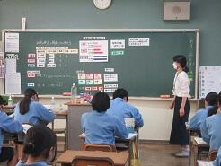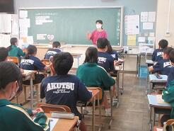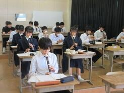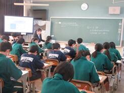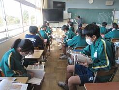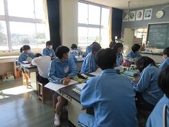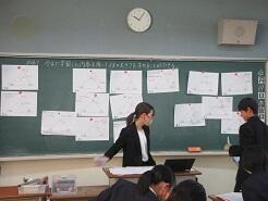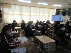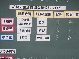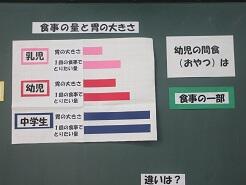 今日は、栄養教諭さんを、3年1、4組の家庭科の授業にお呼びして、「幼児の発達と間食」について学習しました。栄養教諭さんの専門性が生かされ、工夫された授業でした。