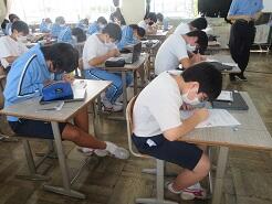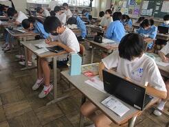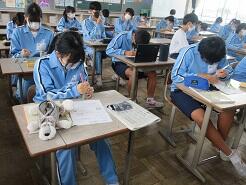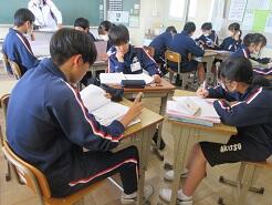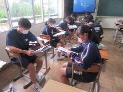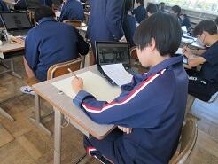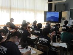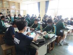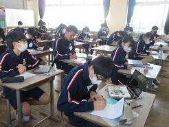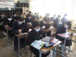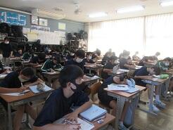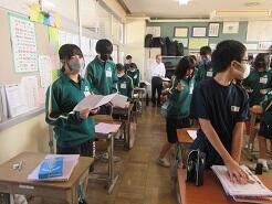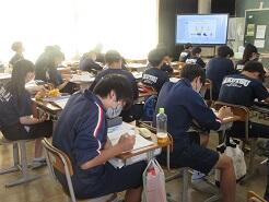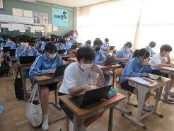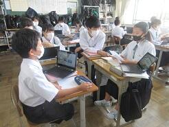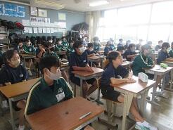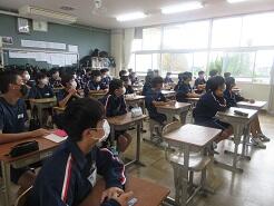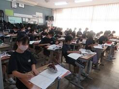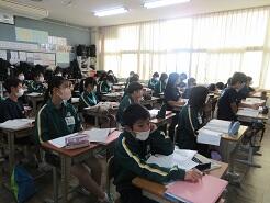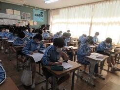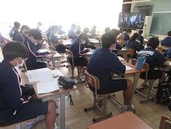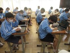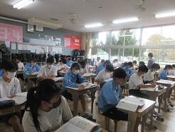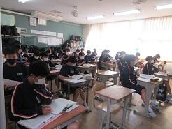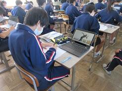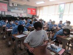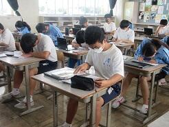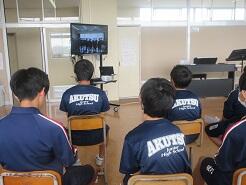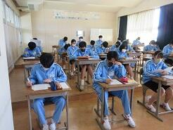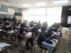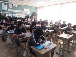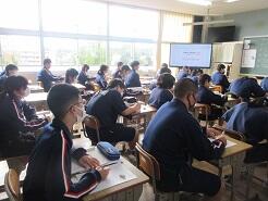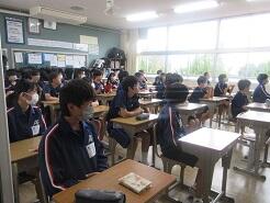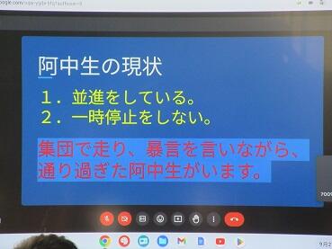 今日の朝、生徒指導主事による交通指導講話をオンラインで実施しました。これは本校生徒の自転車の乗り方の現状を受けて実施したものです。生徒たちは真剣に聴いていました。「阿中生の自転車の乗り方は、とてもいいね」と、いわれる日が来るように指導を続けていきたいと思います。