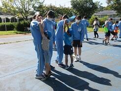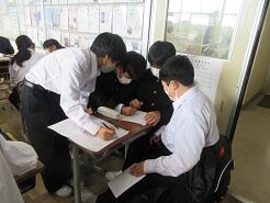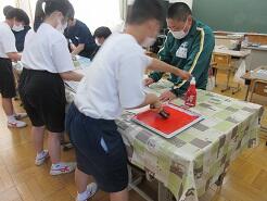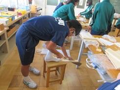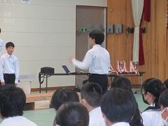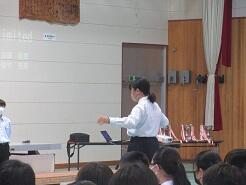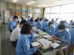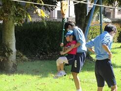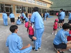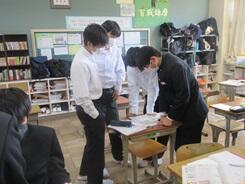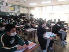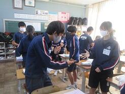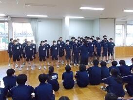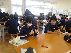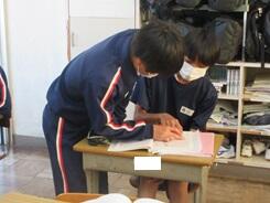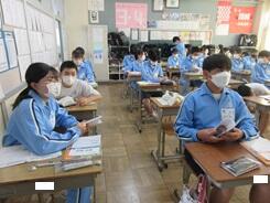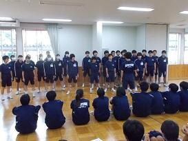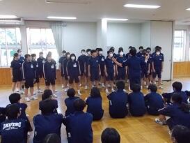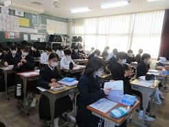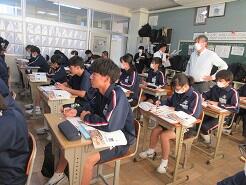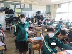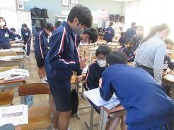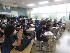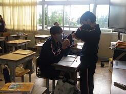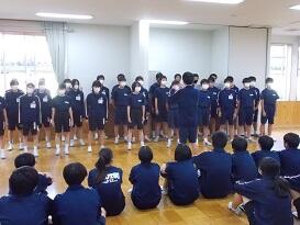 昨日の3年2組の幼稚園体験学習の時、男子の列の一番西側の2人組の生徒の女の子への対応が、実に優し対応で目を引きました。幼稚園の先生が○○ちゃんと呼んでいるのと同じく、○○ちゃん、○○ちゃんと笑顔で呼んで対応していました。そのためその女の子も笑顔であふれていました。優しい生徒たちです。