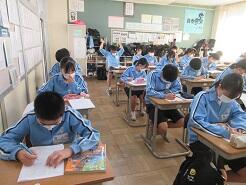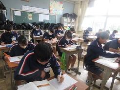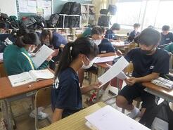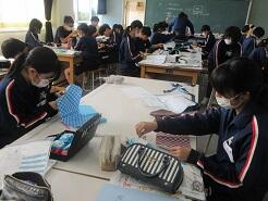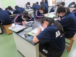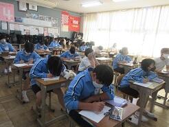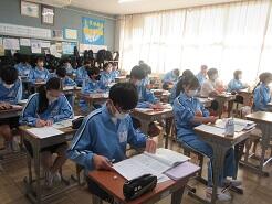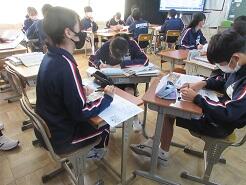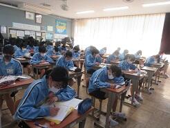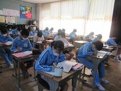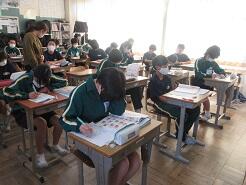 プリントを使って、今まで学習してきたことの復習に取り組んでいました。