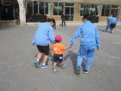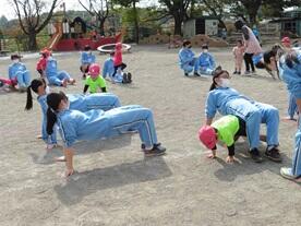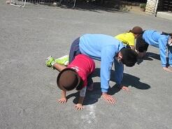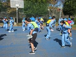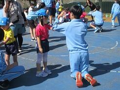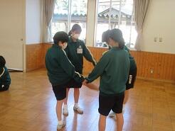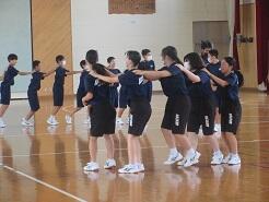 表現運動で、グループでフォークダンスを楽しそうに踊っていました。