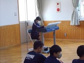 いい情報が聞こえてきました。西小学校の運動会が終わりテントを片付けていると、本校の女子生徒3名が「手伝いますか?」と声をかけ、テント片付けを手伝ったので、とても助かったということです。誰かはわかりませんが、とても良い情報にうれしくなりました。