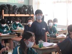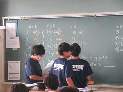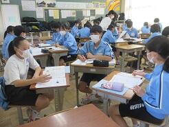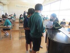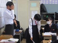 2人組で英語でのやりとりの後に、ALTと英語で会話する練習をしていました。