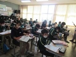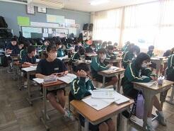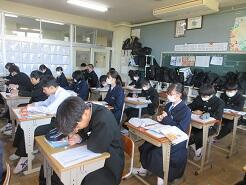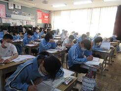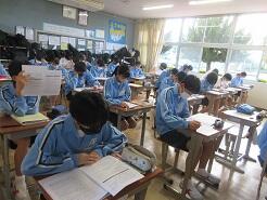 今日の4時間目に、3年生が合唱プレ大会を実施していたので見てきました。いくつかのクラスの合唱を聴いてきましたが、もっともっと声が出るような気がしました。本番を楽しみにしています。