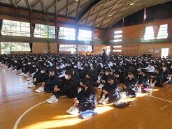 地区新人大会バレーボールの応援で、昨日2階から応援している生徒たちに2倍の声で応援するように伝えて自分も大きな声で応援しました。そして今日、2試合目の氏家中戦をアリーナで応援していると、昨日伝えたことが理解され、とても大きな声で応援し、選手が頑張り、ベンチが盛り上げ、2階席がさらにそれを盛り上げ、全員が一体となって戦っていることが感じられました。とても気持ちのよい空間でした。