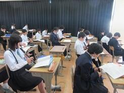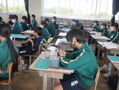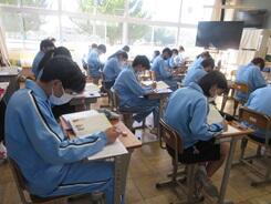 今日の3時間目に、教育実習生の美術の研究授業がありました。水彩絵の具の特徴と表現方法について知り、デッサンした絵に彩色する授業が展開されていました。ちょっとしか見られませんでしたが、元気で表情豊かに授業を進めていました。将来性を感じさせる学生です。