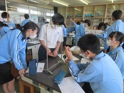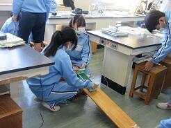位置エネルギーと運動エネルギーの関係を調べる実験に取り組んでいました。