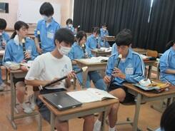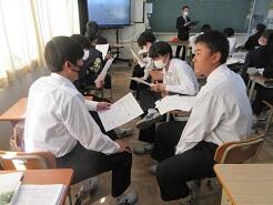 自分たちの合唱を聴いて、これからどんなところに気をつけるを考える授業が進められていました。