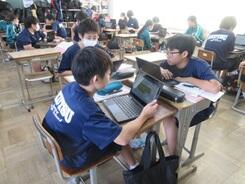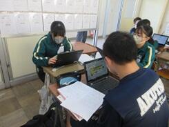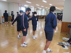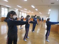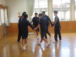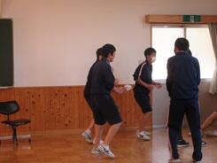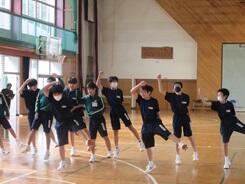 ダンスの教材で、自分たちのグループで使う曲を選んで、少しずつ動き出していました。