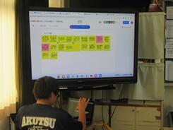 Unit3 Part2の内容理解の後に、関係代名詞(目的格Which)を使ったクイズづくりに取り組んでいました。