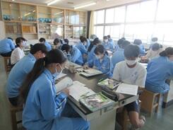 伊曽保物語の「鳩と蟻のこと」を昔話風に再現する学習が進められていました。