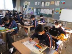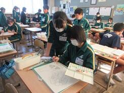 デッサンした下絵が完成した順に、着色に進んでいました。どんな作品が仕上がるのか楽しみです。