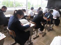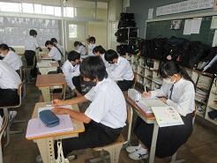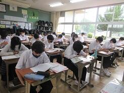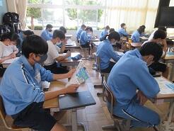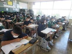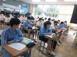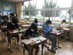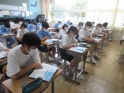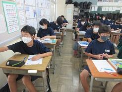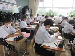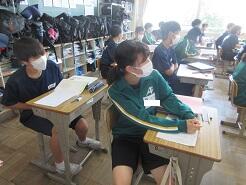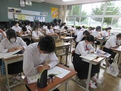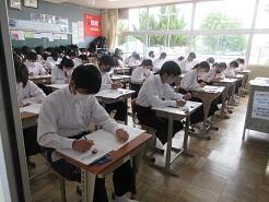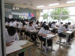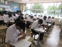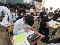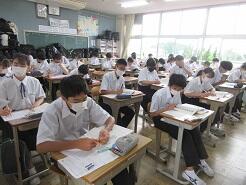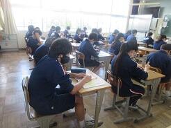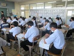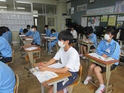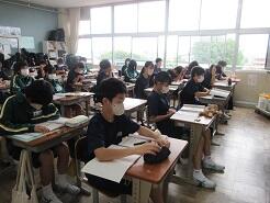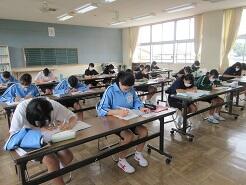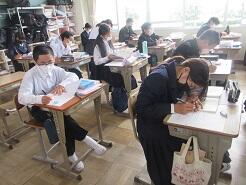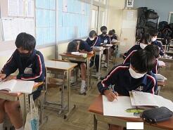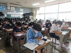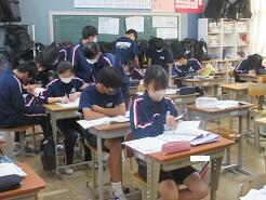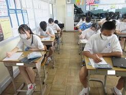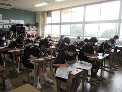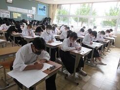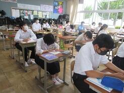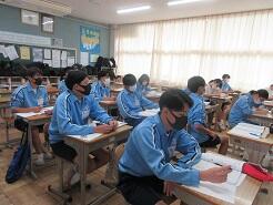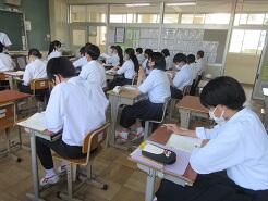3年生は今日は朝から全クラス学習確認テストを実施しています。