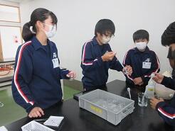 どのような水溶液が、電気を通すのかを調べる実験を行っていました。