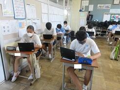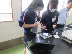 自分たちの班で実験した動画を、クラスルームで共有するための作業を行っていました。